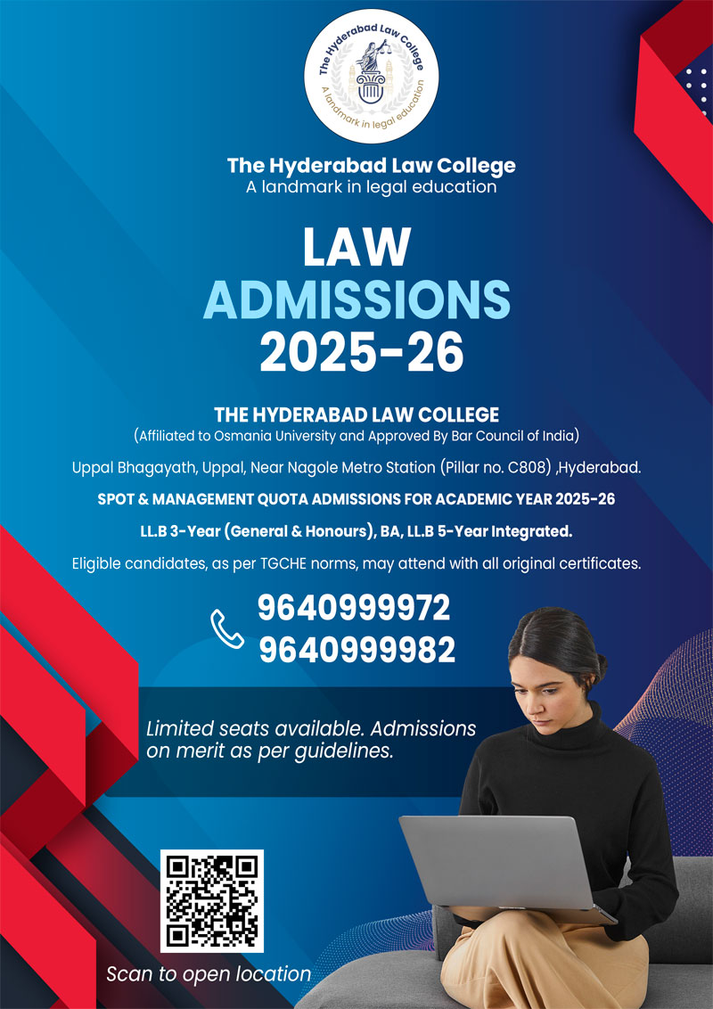 The Hyderabad Law College, established under NNR Educational Society, is dedicated to providing quality legal education and nurturing aspiring legal professionals.